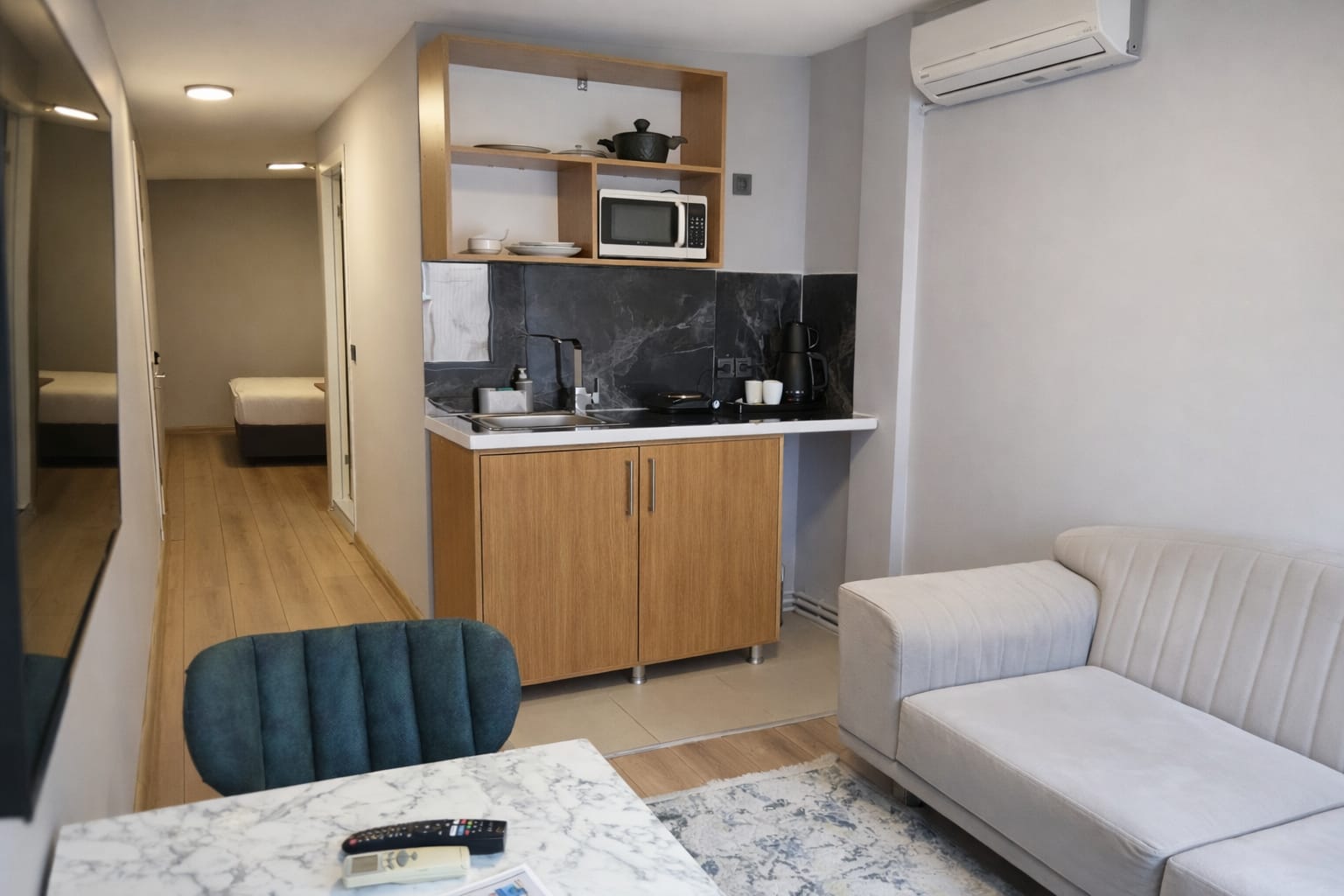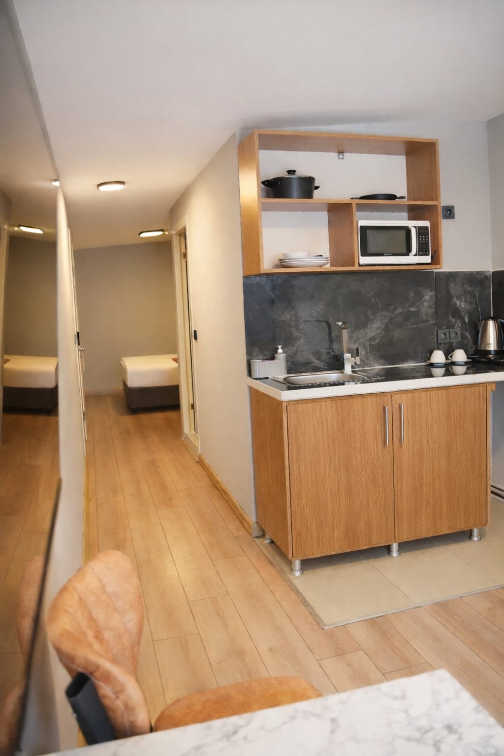 Ekonomik süit odamız uzun konaklamalar için tercih edilen bir odadır. Otelin arka cephesine bakacak şekilde konumlandırılmıştır. Bu odadan yalnızca asma katta 1 adet bulunmaktadır. Odanın içerisinde tam donanımlı bir mutfak bulunmaktadır. Odanın büyüklüğü yaklaşık 30m²’dir. Diğer tüm odalarımızda olduğu gibi bu odada da ücretsiz hızlı internet, klima, akıllı televizyon, su ısıtıcısı, çalışma ve makyaj masası, akıllı kapı kilit sistemi, özel banyo ve ikram çay, kahve ve su şişesi bulunmaktadır. Ayrıca, bu odada ocak, mikrodalga, buzdolabı, tabak ve tencere takımı, yemek masası bulunmaktadır.